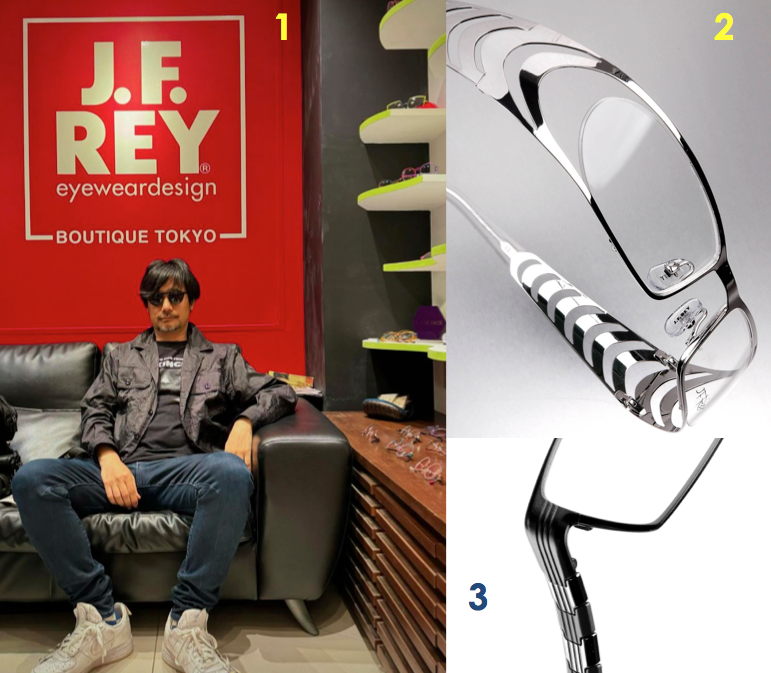 Considéré par certains comme un petit génie du jeu vidéo, Hideo Kojima (photo 1) a travaillé trois fois - en 2015, 2022 et 2024 - avec le lunetier. Comment cette collaboration s’est-elle nouée à l’origine ? C’est simple, le créateur de jeu vidéo japonais était déjà un admirateur de la marque française. Client depuis des années et habitué de la boutique tokyoïte du lunetier marseillais, il connaissait bien l’univers créatif de Jean-François Rey. Les deux hommes se sont rencontrés un jour et voilà, le pari d’une collab’ était lancé…